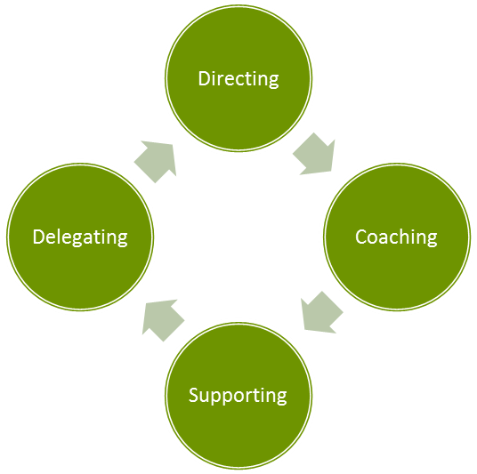 When new people join the team, they understandably will need a level of direction that can be quite high and will leave little time for supporting people. As they gain skill and confidence, the leader can progress to a coaching style where they are still directing tasks but also able to offer additional support. As the employee makes progress, the leader provides more support and less hands-on direction until the direct report has the ability to accept delegated tasks.